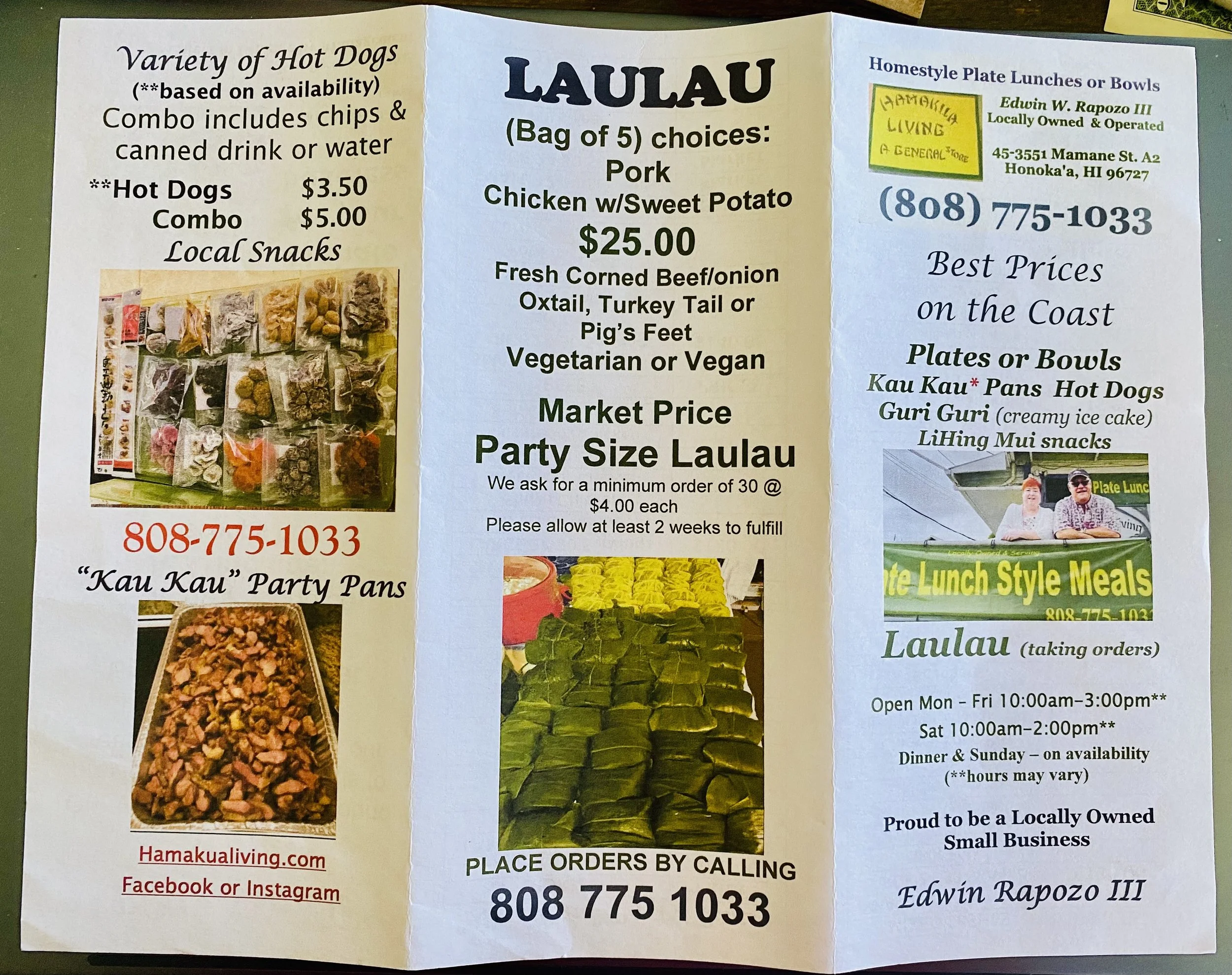 Laulau made to order or one of our many Kaukau Pans to choose from- see options below or call us